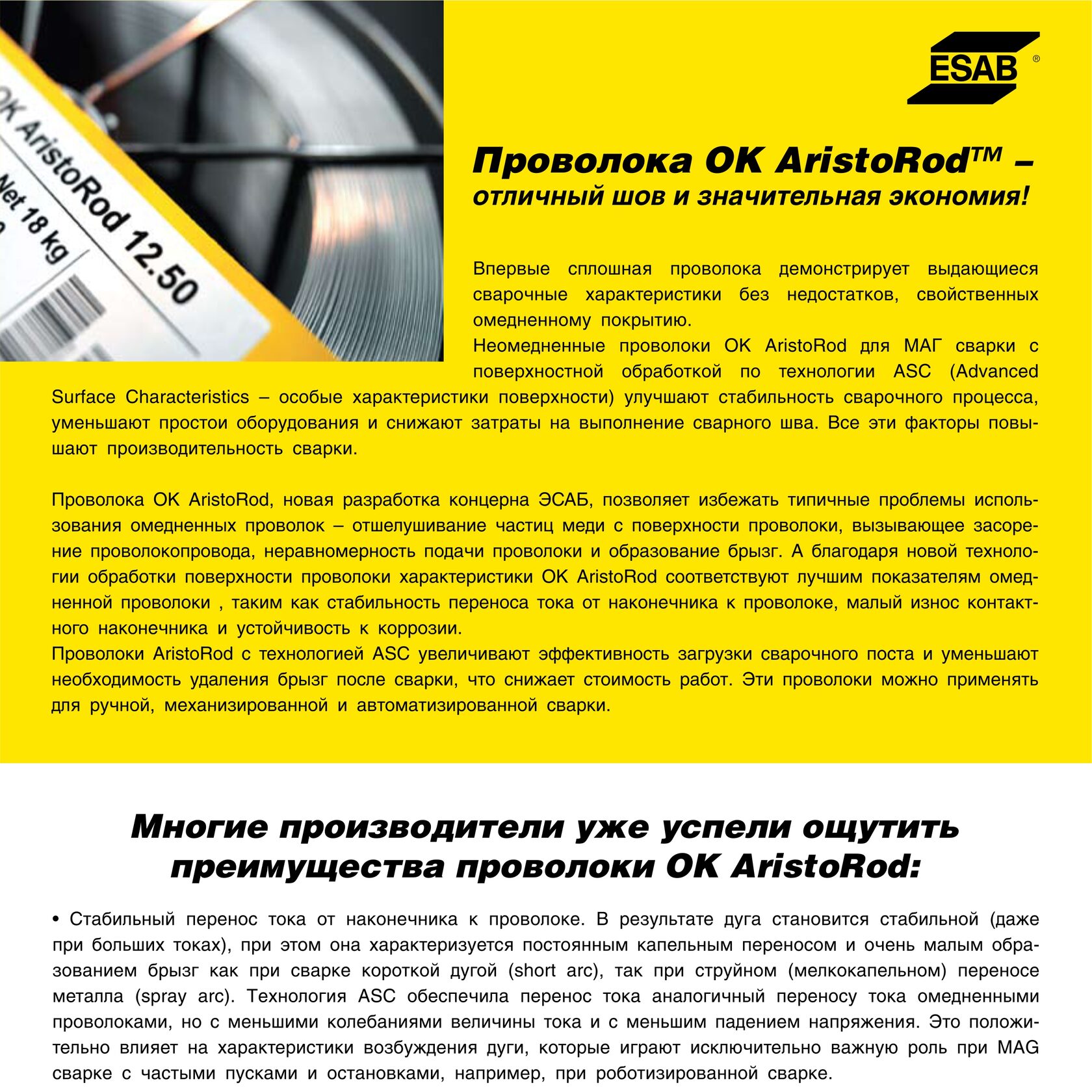 ⠀В каждой из этих сфер ЭСАБ использует постоянно совершенствуемые методы, материалы и ноу-хау, чтобы в полной мере удовлетворить потребности всех секторов промышленности, с которыми связана наша деятельность. Компания ЭСАБ разрабатывает высокопроизводительные решения, которые отвечают требованиям заказчиков из всех сегментов рынка и даже превосходят их.